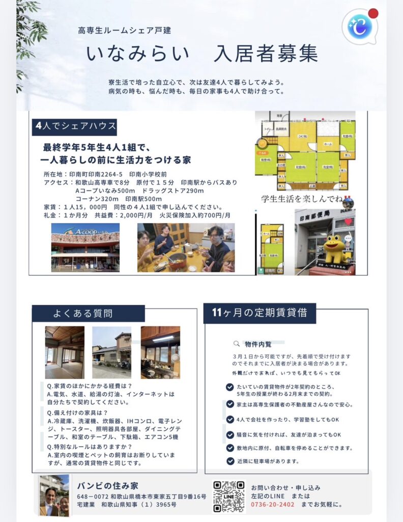 和歌山高専シェアハウス いなみらいの紹介